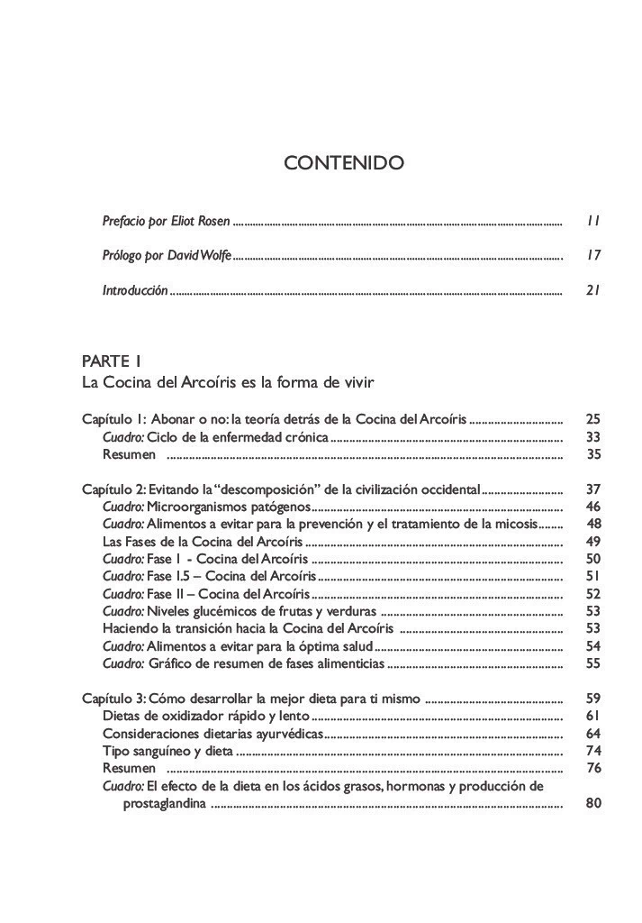 Sostiene que no hay una única dieta para todos y busca los conocimientos científicos para desarrollar una dieta individual. La Cocina del Arco Iris une el enfoque de la sabiduría dietaria ayurvédica con la investigación moderna sobre los factores metabólicos, como la oxidación rápida o lenta, el tipo sanguíneo, la composición genética, etc. Aprender a seleccionar una dieta que se ajuste a tu propia constitución es la clave para la salud y el equilibrio.